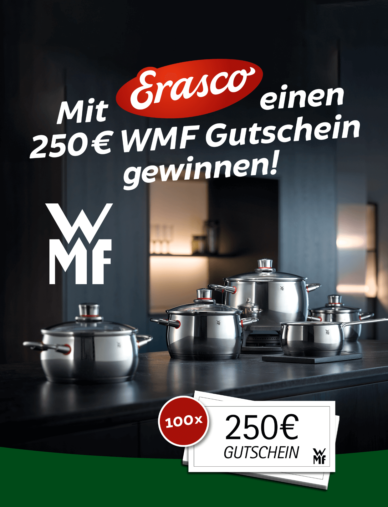 Mit dem 250 € Gutschein von WMF kannst du nach Herzenslust in einer Filiale in deiner Nähe shoppen. Entdecke das vielfältige Sortiment und finde alles, was du brauchst, um deinen Lieben ein leckeres Essen zuzubereiten und deinen Tisch stilvoll neu einzudecken. So wird ein gemeinsames Essen mit Familie oder Freunden noch gemütlicher!